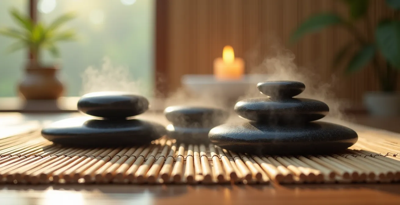While concepts like “meridian channels” and “vitality” originate in Traditional Chinese Medicine, their effects can be understood through the lens of modern physiology. From a Western perspective, “unblocking channels” is analogous to improving circulatory and lymphatic flow, reducing neuromuscular tension, and promoting homeostasis. The sustained, deep-penetrating heat from basalt stones is a powerful catalyst for these physiological processes.